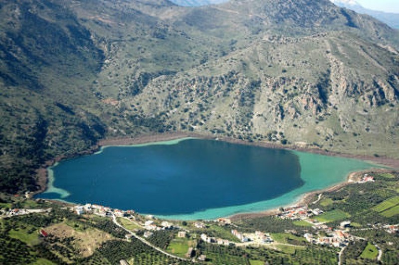 Lake Kournas is the only natural lake on Crete, basically created by the accumulation of groundwater descending from the "Lefka Ori" (White) mountains and is situated in a majestic landscape, between high mountains and olive groves. The dark color of the lake is due to algae found in the bottom.